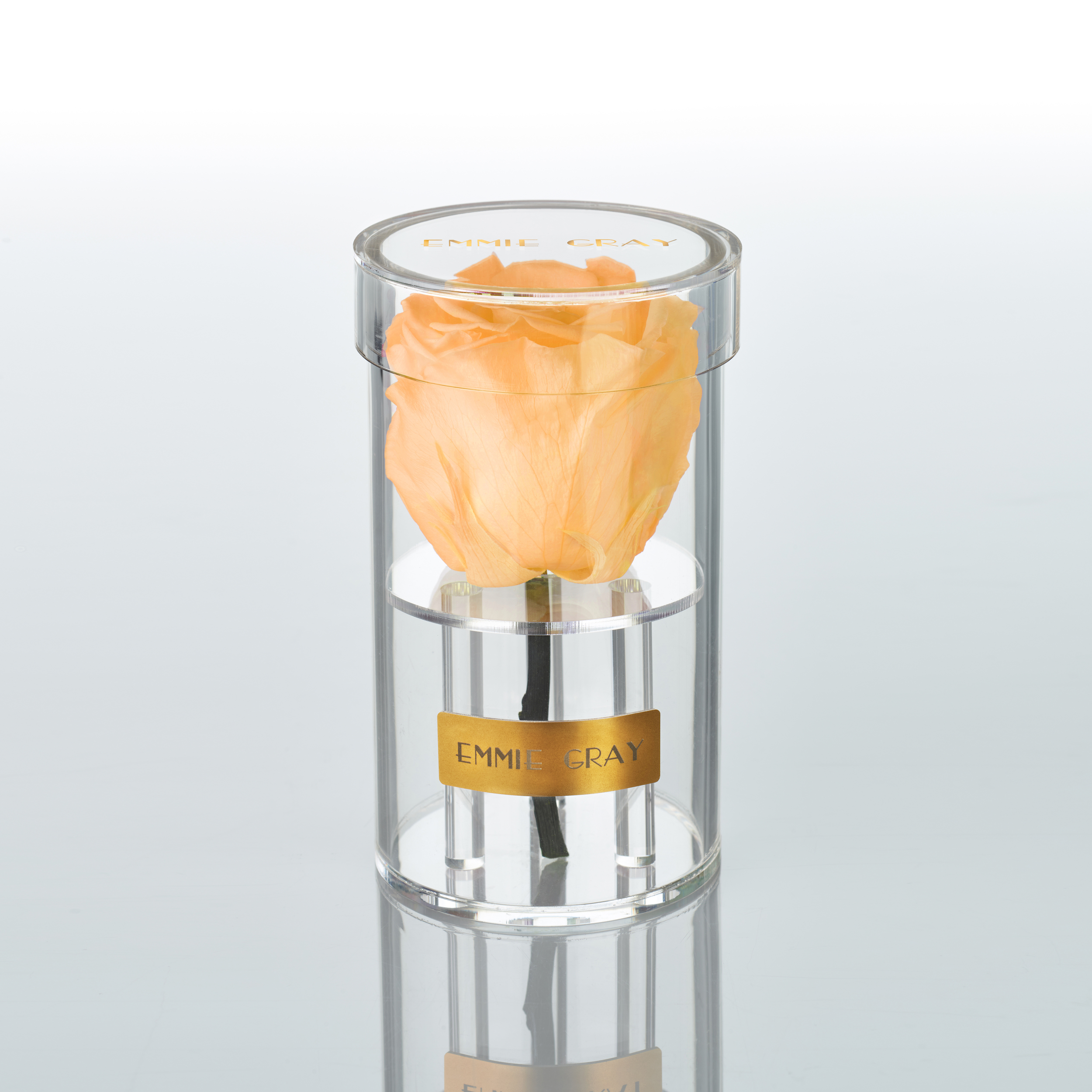 Das transparente Gefäß aus kristallklarem und bruchsicherem Acryl besticht mit goldfarbener Veredelung und schützt die Rose, während es gleichzeitig ihre wahre Schönheit zur Geltung bringt. Durch die schlichte Eleganz wird es zum einmaligen Accessoire für jeden Wohnraum.